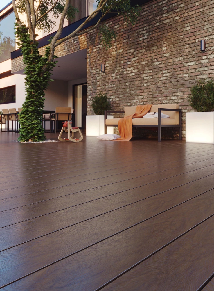 Vďaka vylepšenej technológii výroby kompozitných dosiek tak môžeme využívať najlepšie dostupné prísady bez zvýšenia ceny. Navyše, to všetko s atraktívnym vzhľadom, ktorý dokonale imituje drevo.